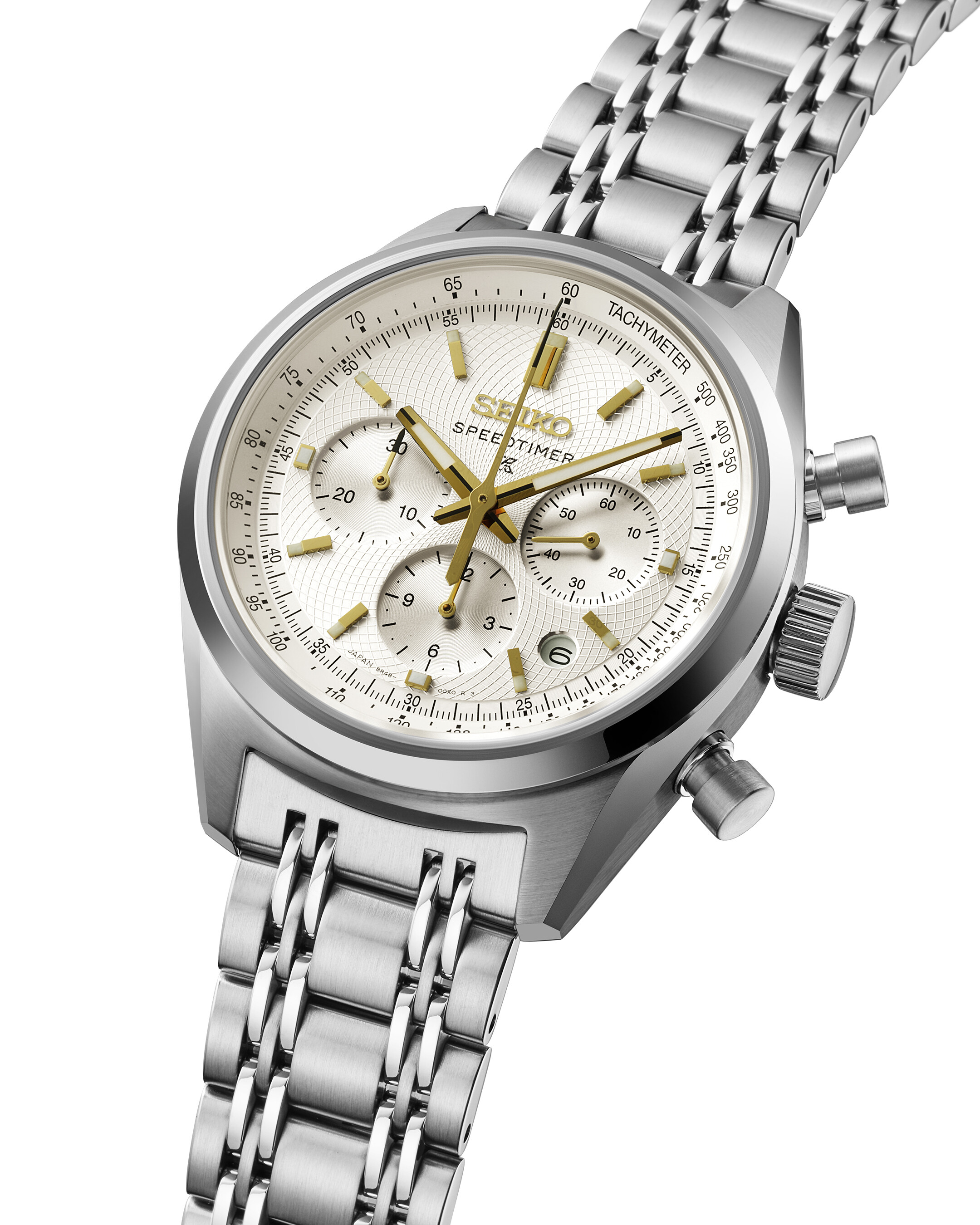 Zlati elementi ob beli številčnici še dodatno poudarjajo prefinjeno eleganco te ure. Ura, oblikovana z dediščino, najde navdih v tekočih dizajnih in elegantno oblikovanih zapestnicah kronografov Speedtimer iz šestdesetih in sedemdesetih let prejšnjega stoletja. Kronograf, ki ga poganja kaliber 8R48, so ročno sestavili najbolj izkušeni Seikovi urarji in zagotavlja visoko natančnost in zanesljivost zaradi inovativnega mehanizma. Njegov zaskočni mehanizem, ki je lahek in močan zaradi tehnologije MEMS, še dodatno izboljša delovanje.