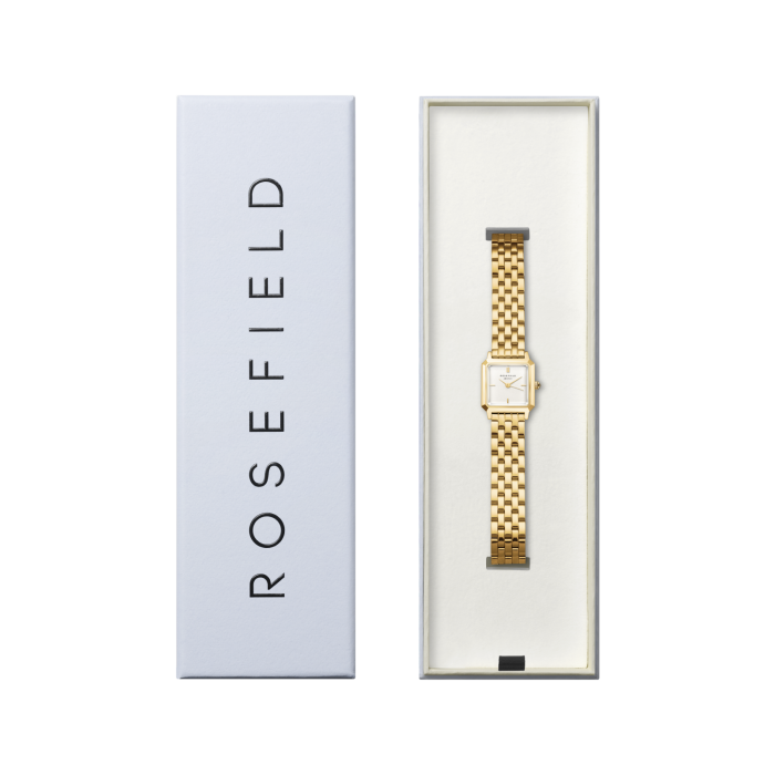 Elegantna ženska ura Rosefield BWGSG-B01 združuje brezčasen dizajn z modernim pridihom. Ponaša se z bleščečim zlatim ohišjem iz nerjavečega jekla in medeninasto zapestnico, ki doda pridih prefinjenosti vsakemu videzu. Idealna za dnevno nošenje ali posebne priložnosti.